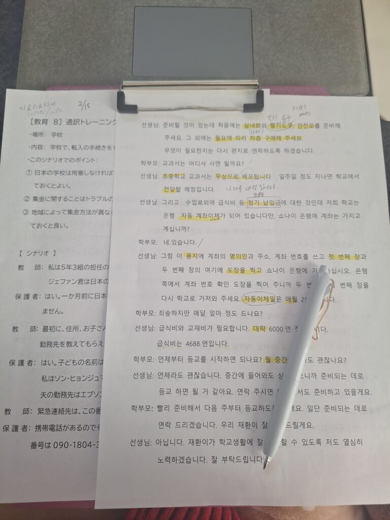 今回は「来日したばかりの韓国人親子が、日本の学校にて転入手続きをする際の通訳」というテーマでした。