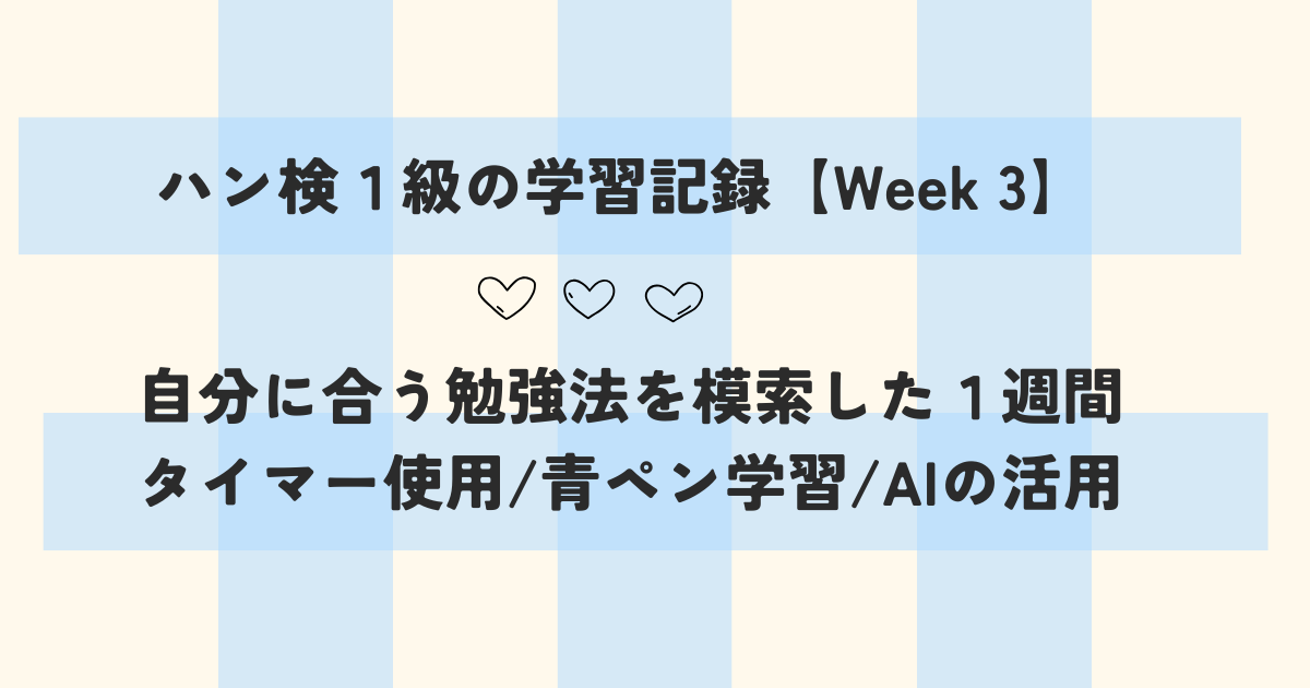 ハン検1級の学習記録【Week3】自分に合う勉強法を模索した1週間/タイマー使用/青ペン学習/AIの活用